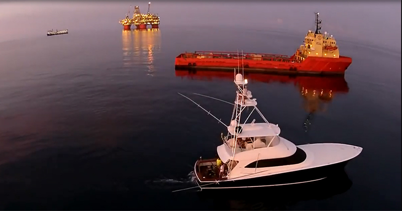 Fishing rods and other gear stows handily and are readily accessible beneath the L-shape sofa to starboard. The sofa faces the entertainment center to port with a 46” flat screen television and Bose Lifestyle 48 system with custom surround sound. The galley island features a granite counter, under counter refrigeration, three bar stools and is adjacent to the dinette that seats four with custom channel glass artwork just above. Forward, the galley offers the convenience of world-class appliances, a walk-in pantry, plus multiple drawer and locker stowage.